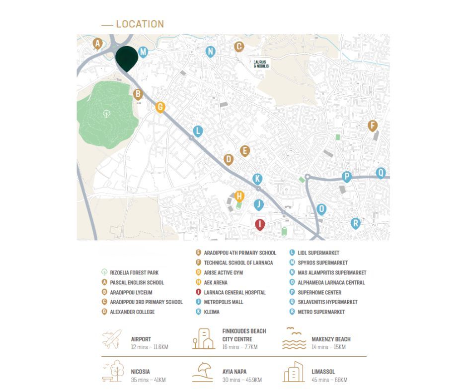 Dit unieke project is gelegen in een van de meest gewilde woongebieden van Cyprus, en biedt een ideale mix van rust en gemakkelijke toegang tot essentiële voorzieningen. De uitstekende locatie biedt directe verbindingen met vervoersknooppunten, winkelcentra en top onderwijsinstellingen, waardoor het de perfecte keuze is voor gezinnen, professionals en eerste huizenkopers.